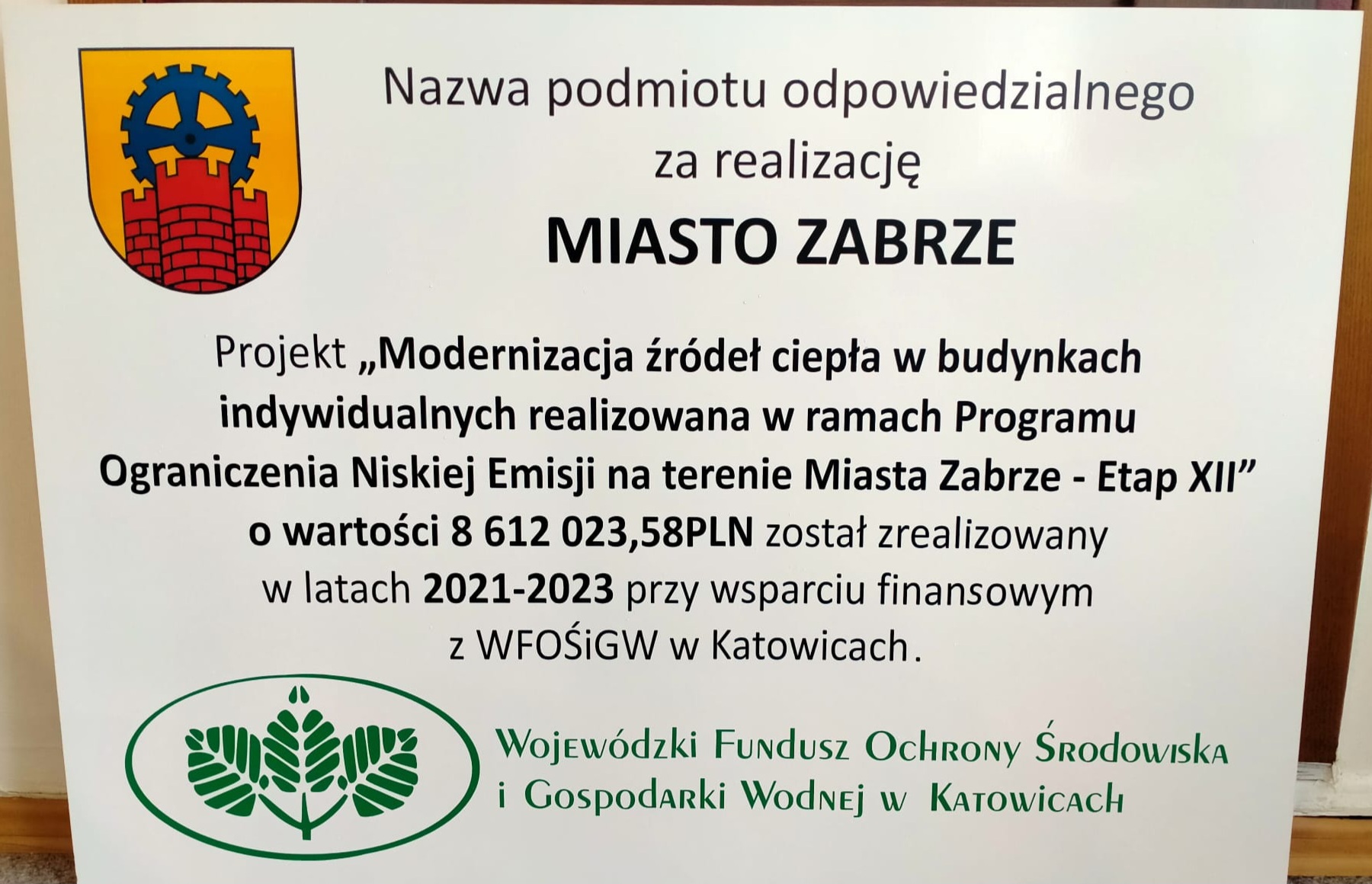 Program realizowany był przez Urząd Miejski w Zabrzu ze środków pochodzących z Wojewódzkiego Funduszu Ochrony Środowiska i Gospodarki Wodnej w Katowicach. Operatorem odpowiedzialnym za koordynację projektu i obsługę jego uczestników była firma EKOSCAN Innowacja i Rozwój Sp. z o.o.